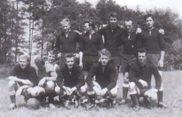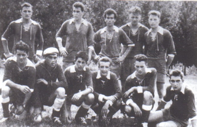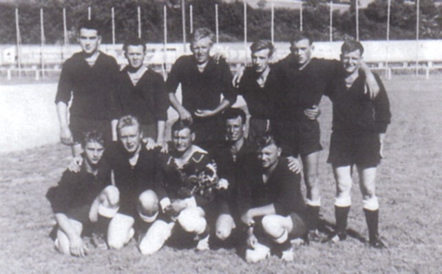 Hintere Reihe von links: 1. Vorsitzender J. Tomasetti, K. Beckfeld, W. Geörge, H. Haas, A. Frießling, R. Schilling, M. Hammerer, St. Groß, W. Tautz, Trainer: F. Gläser; vordere Reihe von links: E. Brauch, H. Ihrig, H. Schäfer, G. Schäfer, M. Hügel