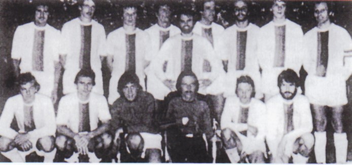 Hintere Reihe von links: H. Griesbeck, F. Guida, G. Schäfer, M. Hammerer, P. Gutzeit, H. Röhrig, S. Sommnitz; mittlere Reihe von links: Trainer: R. Fanz, P. Pfeifer, W. Tautz, R. Willaredt, P. Baumgart, Masseur: K. Nesper; vordere Reihe von links: St. Groß, K. Hrynda, Häusele, W. Geörge.