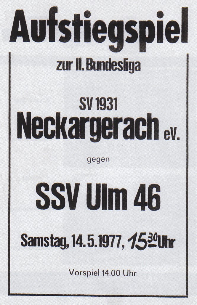 Grundstein für die Meisterschaft gelegt. Ein stolzer Erfolg für den SVN, die Gemeinde Neckargerach und den Odenwaldkreis. In die Aufstiegsspiele zur 2. Bundesliga ging man mit gedämpften Optimismus. Am Ende der Aufstiegsrunde teilte man sich mit dem SSV Ulm den letzten Platz. Ein kleines Abenteuer war beendet und der Verein um einige Erfahrungen reicher.