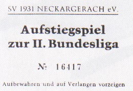 Eintrittskarte zum Aufstiegsspiel gegen den SSV Reutlingen am 28.5.1977